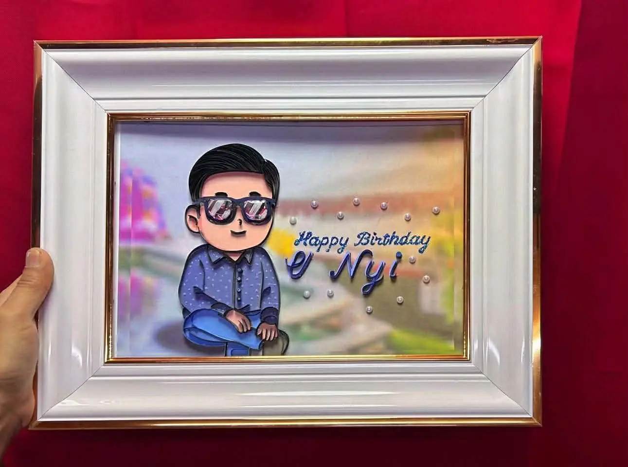 စက္ကူမျှင်လေးတွေကိုလိပ်ပြီးဖန်တီးရတဲ့ Paper Quilling Art ဆိုတဲ့ လက်မှုပညာ တစ်ခုကိုလုပ်ကိုင်ပါတယ်။